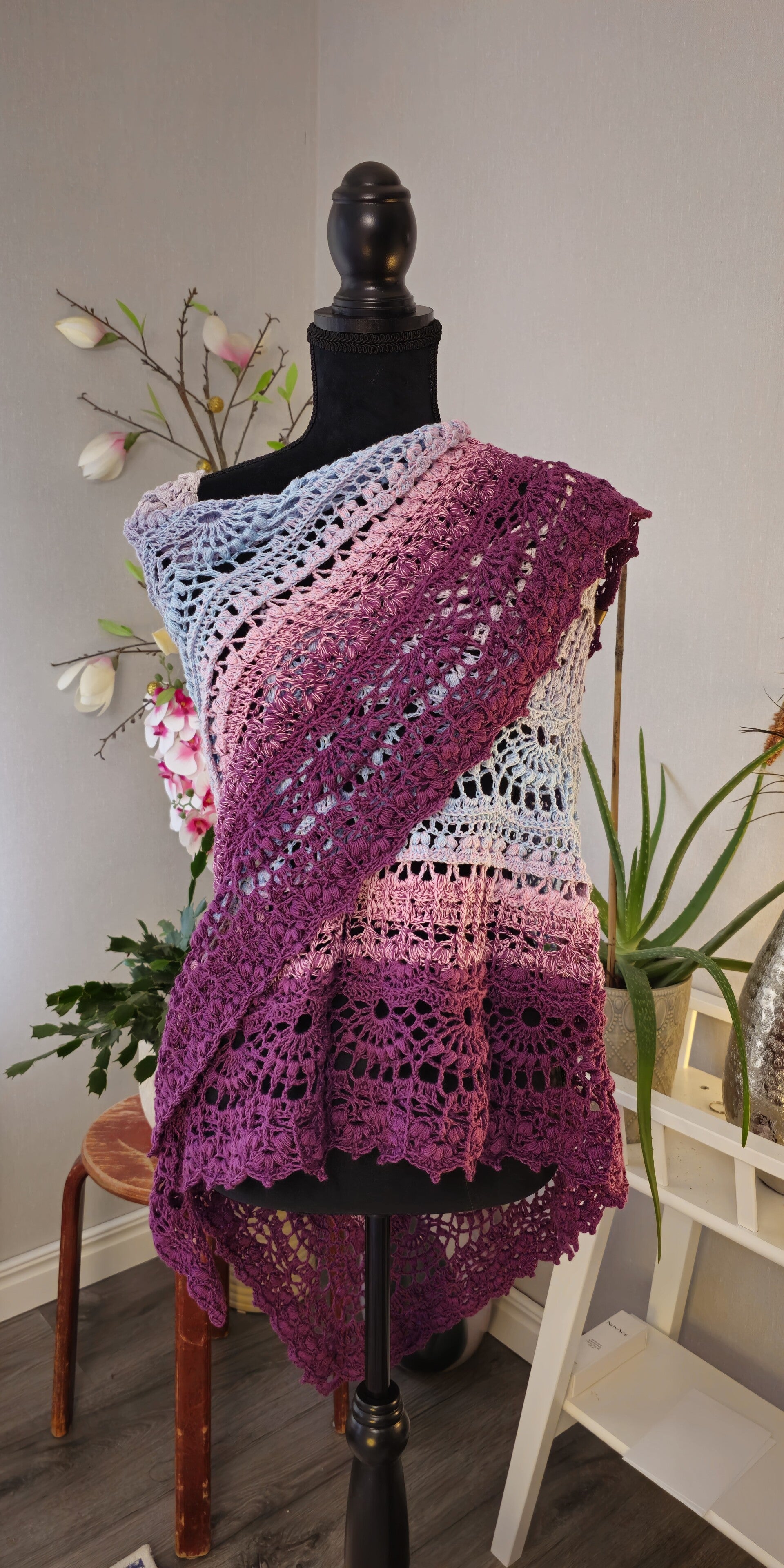 Sjalen är virkad efter mönster "Kalinka" designad av Martika Grabowska, Kaleo Handmade.
